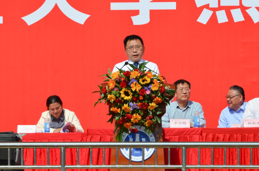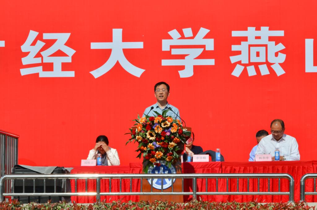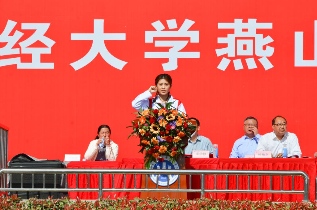 邵文涛致开幕词,他指出,今年,正值学校建校二十周年,回顾学校这二十年的发展历程,每一步都凝聚着师生们的智慧与汗水。燕山学院坚持把立德树人作为根本任务,坚持“健康第一”的教育理念,让学生在体育锻炼中“享受乐趣、增强体质、健全人格、锤炼意志”。学校始终将体育教育放在重要位置,不断深化体育改革,积极推行“公共体育课+专项体育课”模式,重视学生基本身体素质的提升,突出专项运动技能的学习,满足同学们多元化的运动需求,助力同学们养成良好的锻炼习惯,促进身心健康发展。青年兴则国家兴,青年强则国家强。希望大家以本次运动会为契机,继续践行 “每天锻炼一小时,健康工作五十年,幸福生活一辈子” 的理念,为建设特色鲜明的地方高水平应用型财经学校贡献力量!最后,预祝全体运动员取得优异成绩,预祝本次运动会安全、有序、圆满成功。