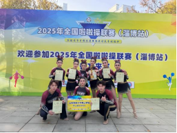 近日,2025年全国啦啦操联赛(淄博站)圆满落幕,我校啦啦操队首次出征全国赛事,凭借扎实的技术功底、默契的团队配合与饱满的精神风貌,在众多参赛队伍中脱颖而出,摘得2金1银1铜,为学校赢得了荣誉。